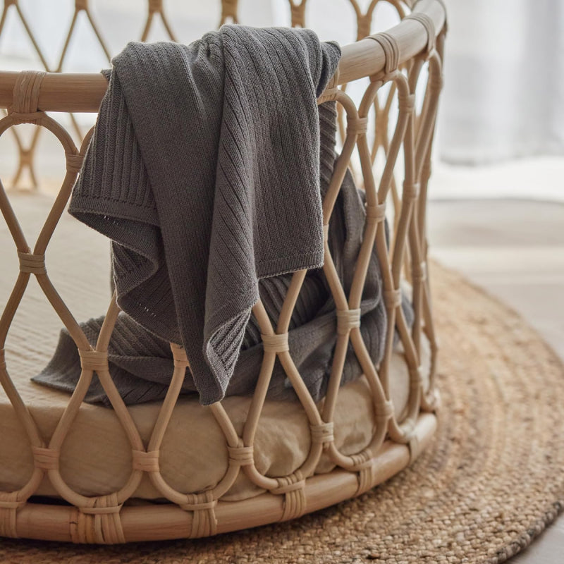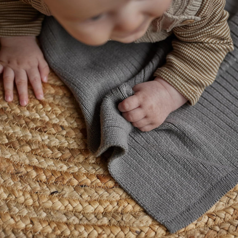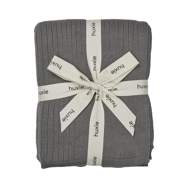 Organic Knitted Blanket - Ribbed - Cloud Grey