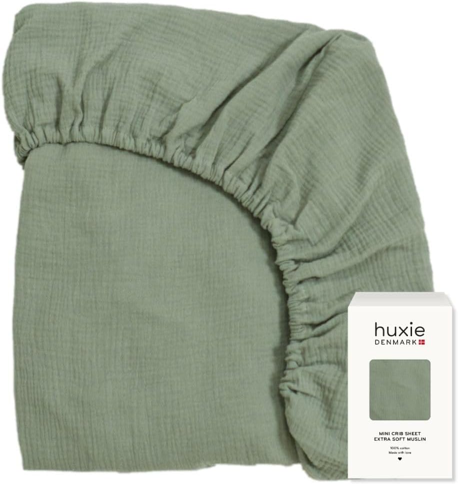 Mini organic Crib Sheet Sage Green/Natural (2-pack)