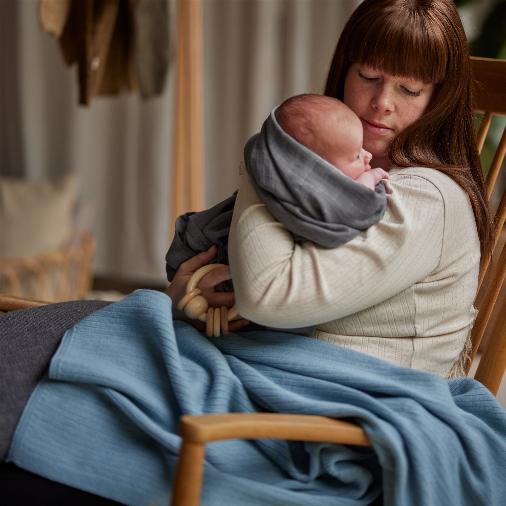 Organic Knitted Blanket - Ribbed Fog and Polar Blue (2-pack)