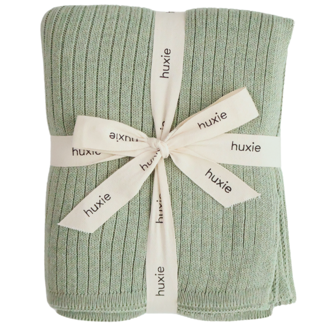 Organic Knitted Blanket - Ribbed - Roman Green
