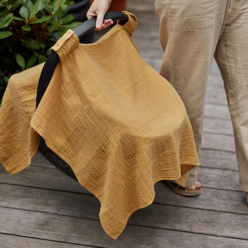 ORGANIC BREATHABLE MUSLIN: Made from 100% organic muslin cotton, Huxie Carseat Canopy keeps your infant comfortably in privacy, protected from sunlight, wind, bugs and dust.
